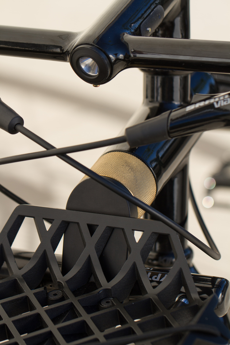 The BLACKLINE features a strikingly bold yet simplified frame with a singular, angled 2” down tube, which makes dismounting your ride a little easier in stop-and-go traffic. Not to mention, it might turn a few heads.