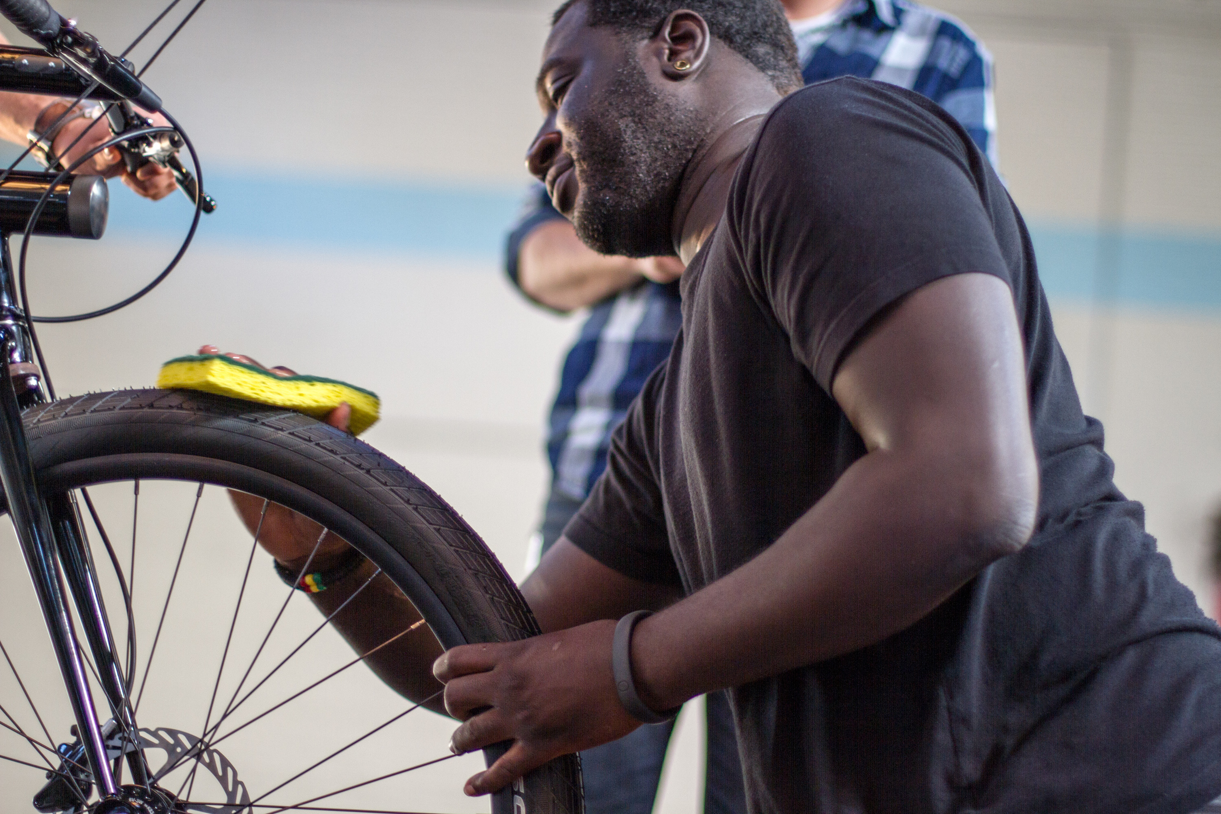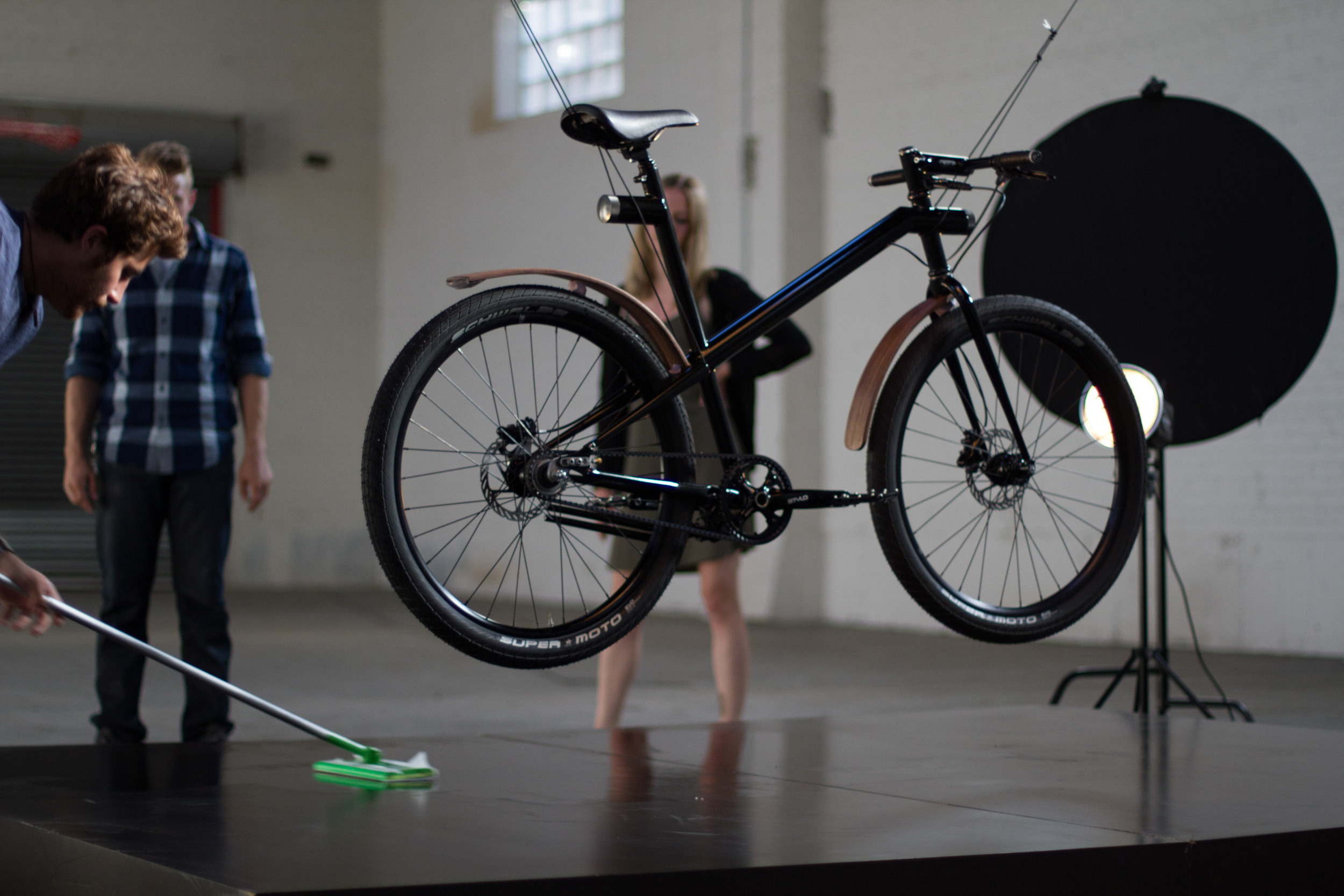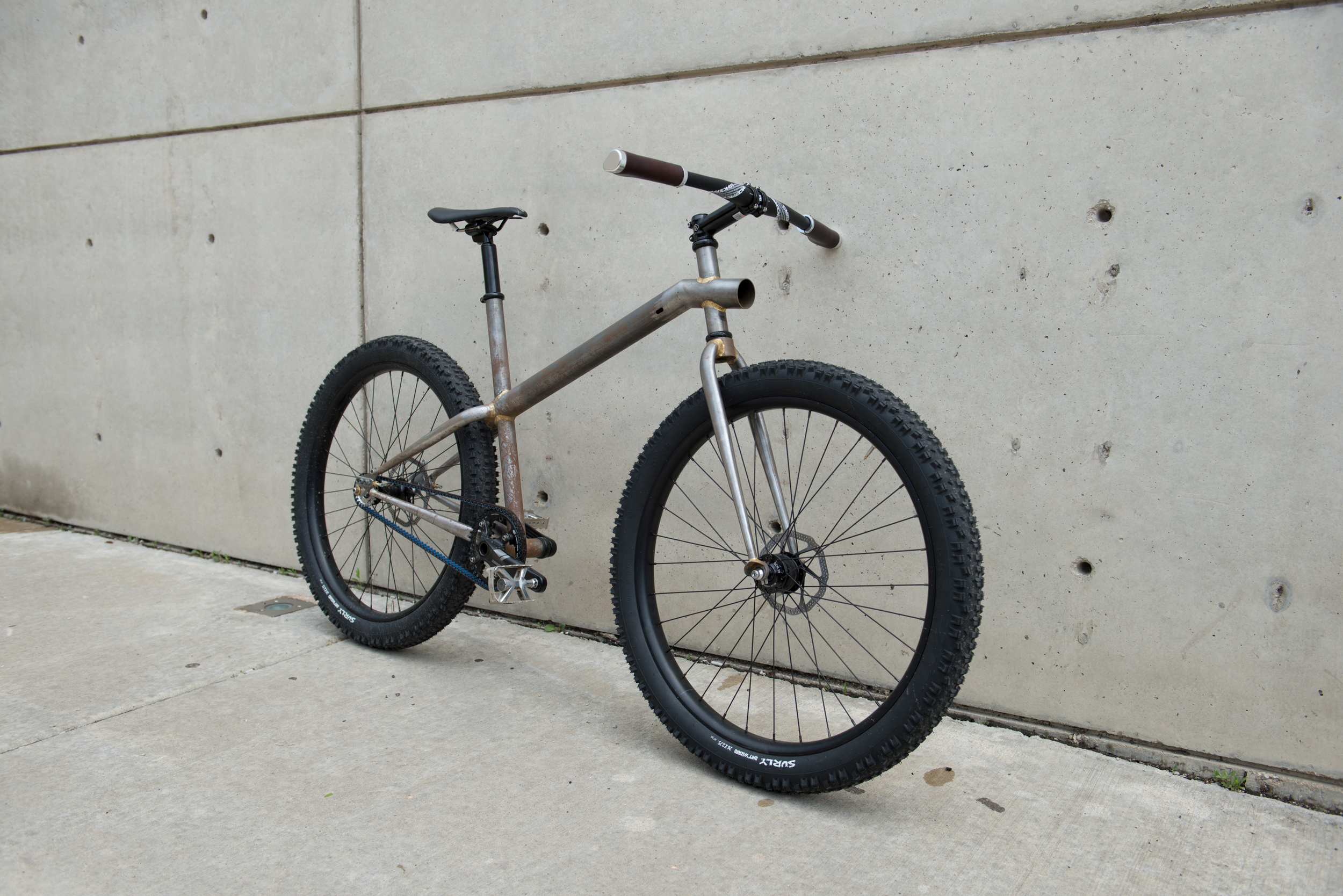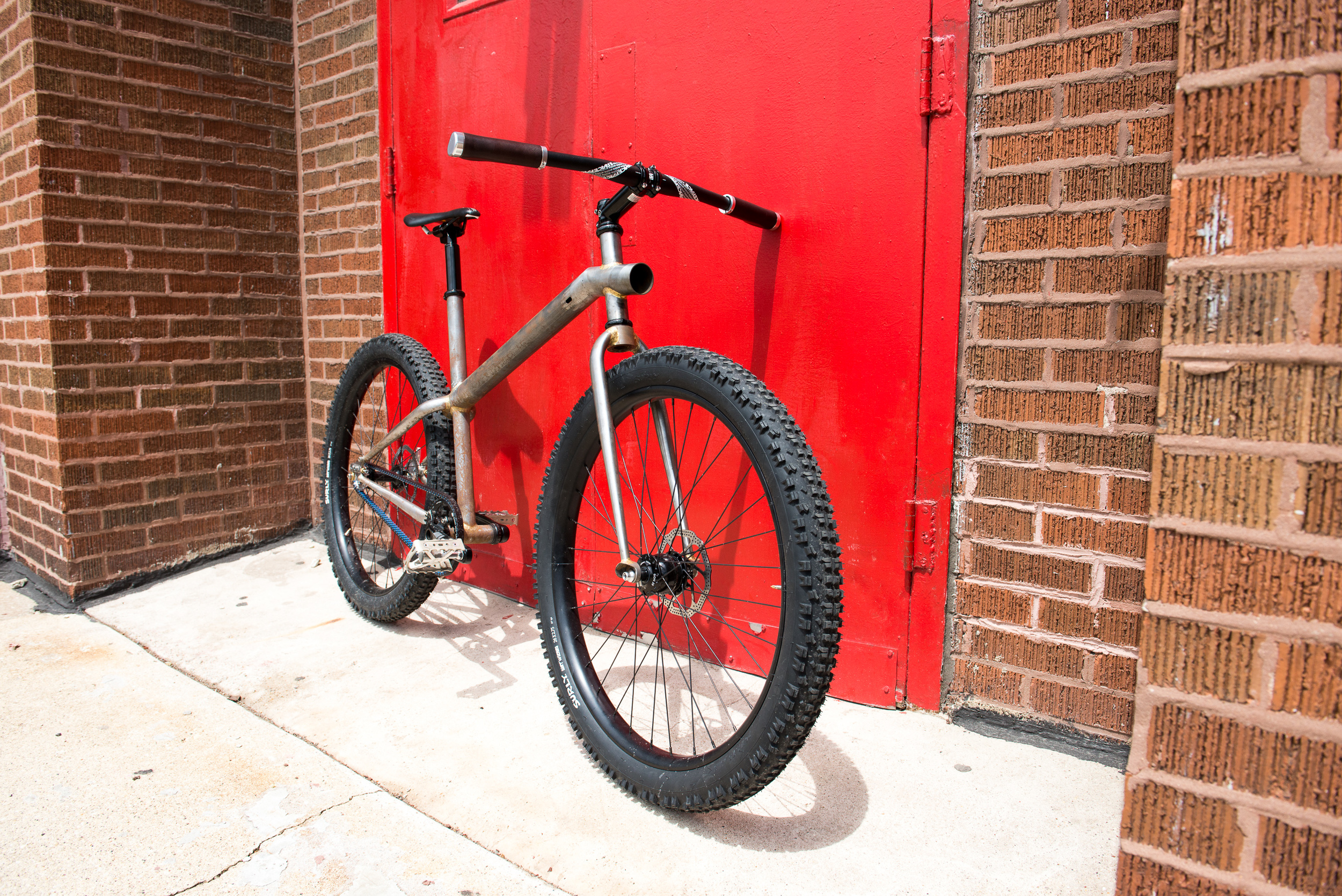 - 26” Schwalbe Super Moto tires mounted to Velocity Blunt rims