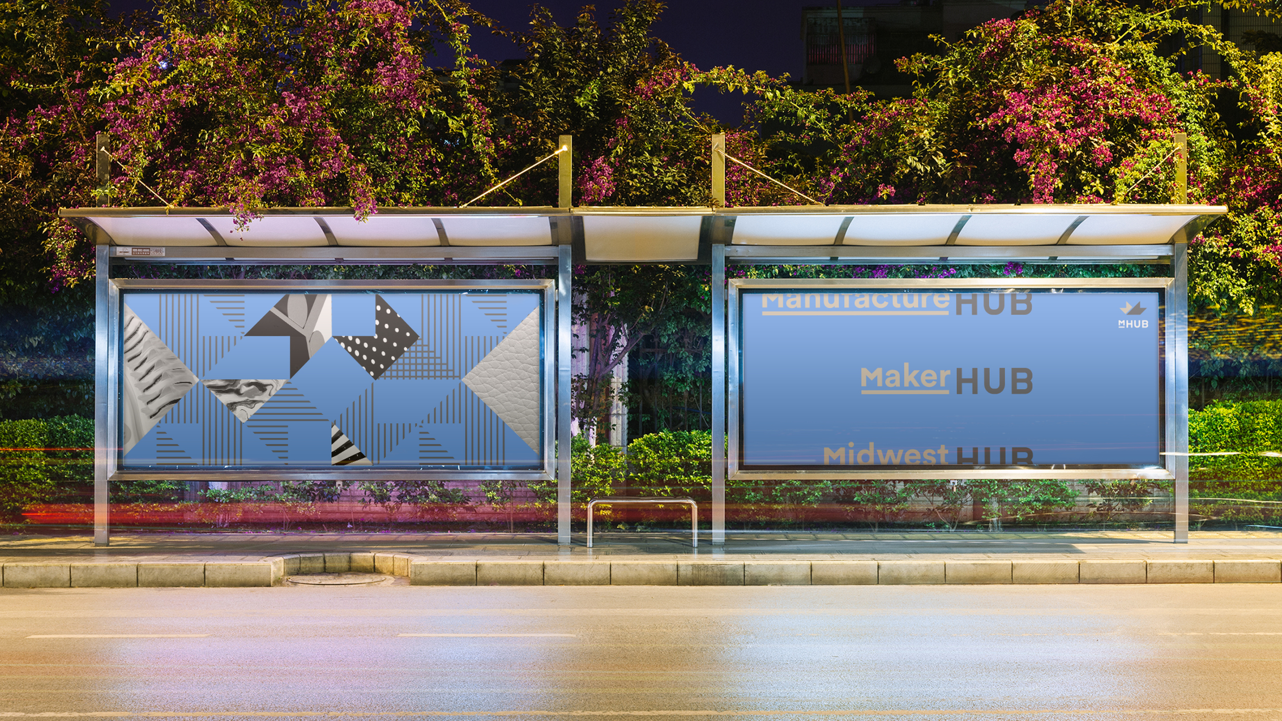The “M” in mHUB takes on several meanings, including Make, Manufacture, Mentor, Midwest, Machines, and Momentum. This flexibility became the inspirational guide in developing the “spark” logomark. The mHUB spark represents collaboration, as well as a new acceleration and trajectory. Ideas that might start off small are incubated and developed into something bigger and more impactful. The custom wordmark echoes the shapes of the logomark to reinforce the importance of the M in mHUB, and how it represents a beacon for product innovation.